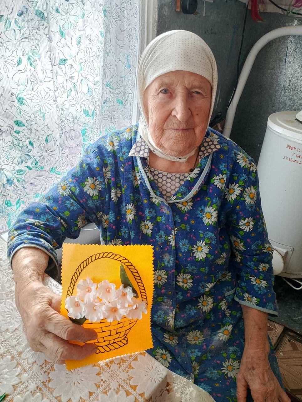 А социальные работники отделения социально-бытового обслуживания на дому № 1 и 2 провели акцию – поздравление для получателей социальных услуг «Славим возраст золотой!», в рамках которой вручили пожилым людям красивые букеты цветов, небольшие подарки и открытки, сделанные на мастер-классе.
