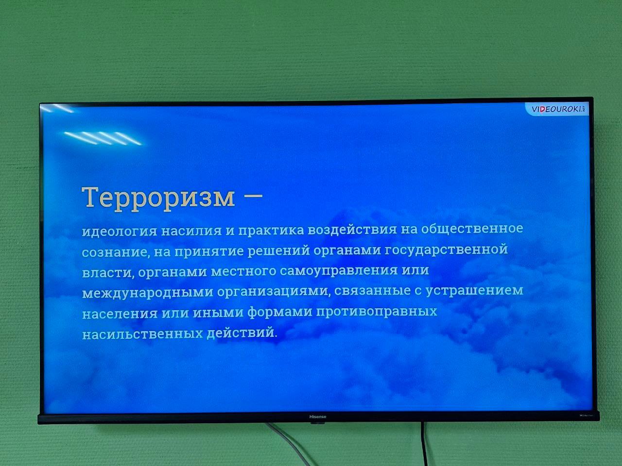 Опаснейшим посягательством на безопасность людей, нарушающим это право, является терроризм. Важно помнить, что с терроризмом следует не только бороться, но и предупреждать его возникновение. Бдительность, ответственность каждого из нас составляют арсенал антитеррористической коалиции. Мы должны помнить, что любой человек, независимо от занимаемого положения, может вдруг оказаться причастным к трагедии. Только толерантность и взаимоуважение позволят предупредить разрастание социальной базы терроризма и лишат преступников надежды на поддержку в обществе. Это лучшая профилактика экстремистских настроений.